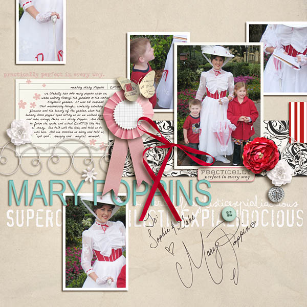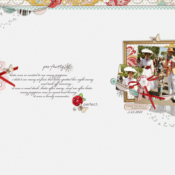 Time for something pretty! Practically Perfect, a collaboration with designer Ju Kneipp, is a whimsical kit that is fabulously feminine! With playful combinations of soft pastels, bold reds, polka dots, ribbons & glass buttons, this kit is wonderful for scrapping tea parties, dress-up adventures, or even a “jolly holiday” with your favorite magical nanny! With a wide variety of papers & embellishments, Practically Perfect will be a kit you reach to again and again, for both everyday moments and more formal events. Perfection!